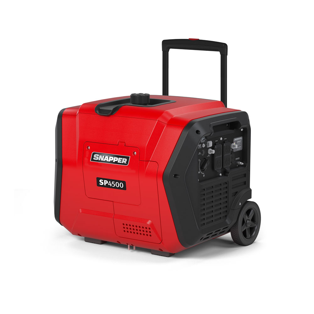 The Snapper® SP4500 includes a telescoping handle that allows for easy maneuverability, ideal for RV, campsite and recreational use. The multi-functional display panel monitors power usage, fuel level and run time. (2) 120V, 5-20R Duplex Outlets, (1) 120V, 30A RV outlet and (2) USB ports allow you to stay connected and keep multiple items powered simultaneously.Features